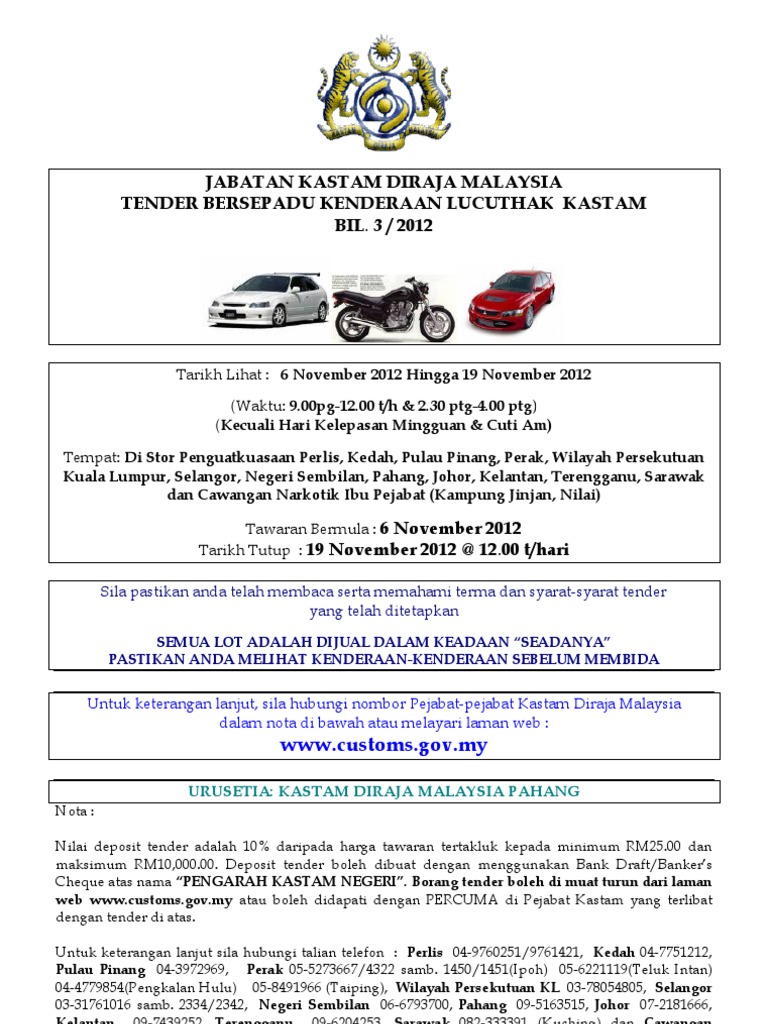 Tender Kenderaan Kastam Pdf Document Kota bharu travel tips provides useful information to discover kota bharu gps. Jabatan Kastam Diraja Malaysia Kompleks Kementerian Kewangan No 3 Persiaran Perdana Presint 2 62596 Putrajaya 1300 888 500 Pusat Panggilan Kastam. Memastikan kontrak ditandatangani oleh Pegawai Awam yang diturunkan kuasa oleh Menteri.